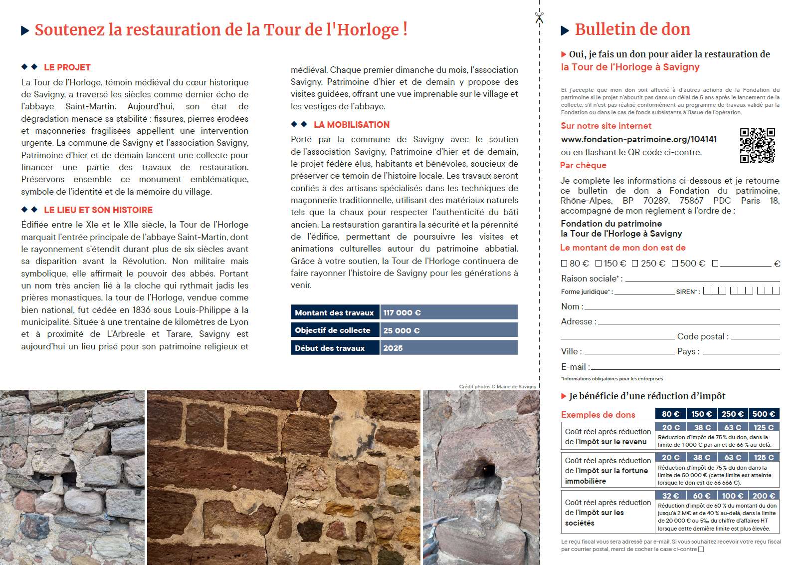 La commune de Savigny, en partenariat avec l’association Savigny, Patrimoine d’hier et de demain, lance une campagne de dons, avec le soutien de la Fondation du patrimoine, afin de financer une partie des travaux de restauration.